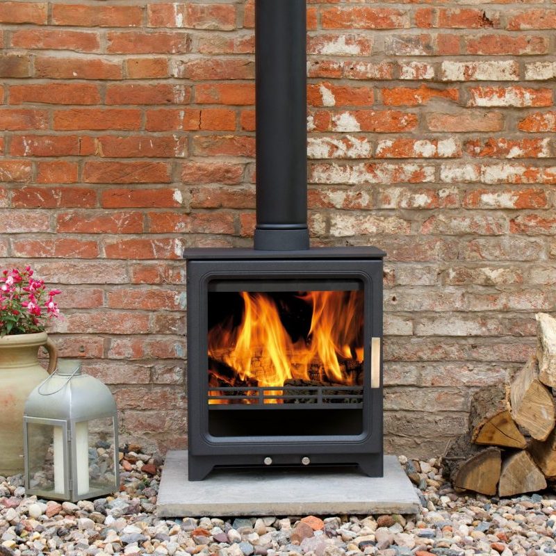 Constructed from steel and cast iron, the ACR Woodpecker WP5PLUS has a wide glass door for an extraordinary view of the flames and is stylish in it’s design, especially the chrome air controls. Being EcoDesign approved means it is among some of the cleanest stoves on the UK market making it an ideal choice for sustainable heating. It is also DEFRA exempt meaning you can burn wood in smoke controlled areas. This stove has the option of Direct Air making it ideal for new build installations.