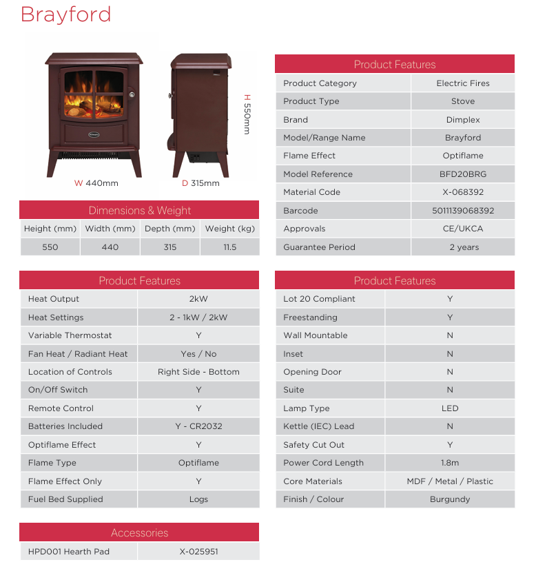 Dimplex Brayford Burgundy