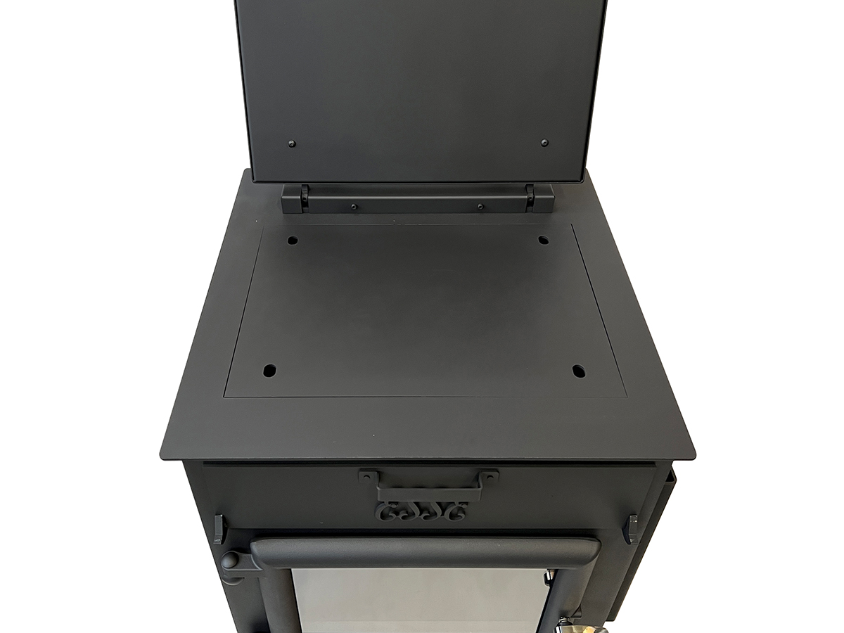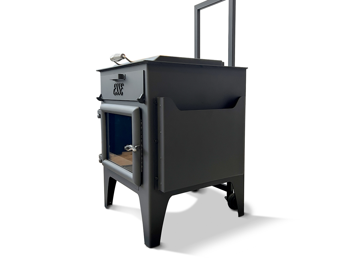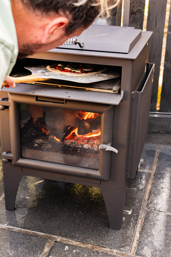 This handcrafted British wood burner delivers warmth and wood-fired pizza straight to your garden. Built from durable UK steel and cast parts, it features a glass firebox door and a pizza steel that fits a full 14″ pizza. Designed for logs up to 400mm and fitted with a 1000mm rear flue for cleaner, low-smoke cooking. Easy to move, easy to maintain, and made to last. Whether it’s a terrace, garden, or tucked beside a shepherd’s hut—it’s your go-to for laid-back outdoor living.