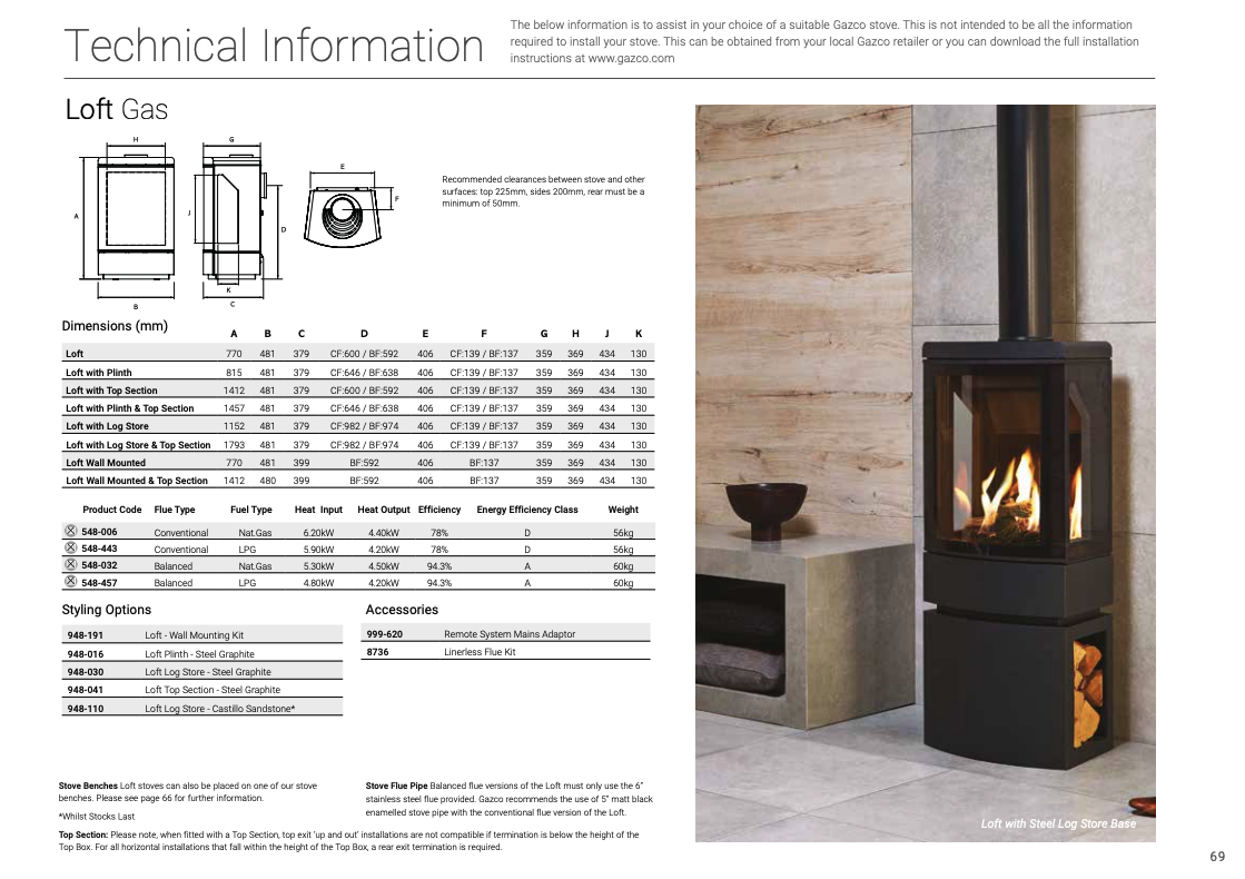 Loft stoves can be styled with a variety of accessories, offering a range of luxury options for your gas stove. You can choose to mount your stove on a matching steel Plinth or Logstore base. Alternatively the Logstore base is also available in a smart Castillo grey sandstone finish.