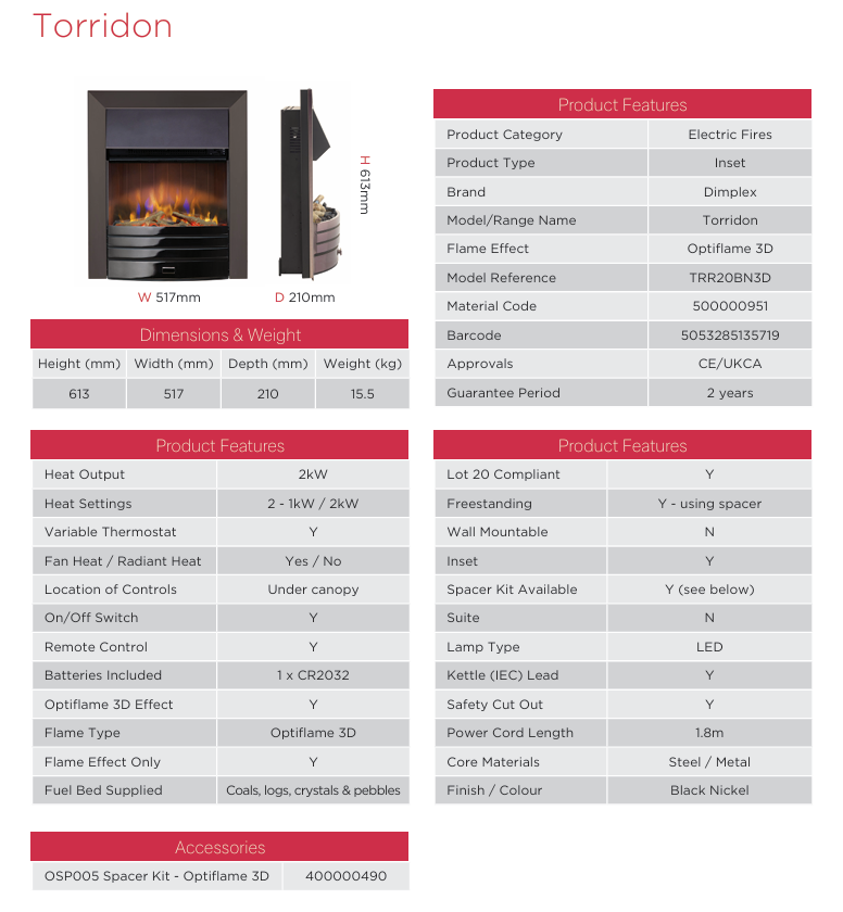 Experience the captivating realism of the Torridon inset electric fire, featuring Dimplex’s advanced Optiflame 3D technology. With a sleek black nickel or chrome finish, it brings modern style and ambience to any home. Choose from a range of flame colours, brightness levels and fuel bed options to create your perfect look. Enjoy up to 2kW of heat or use the flame-only setting for year-round comfort.